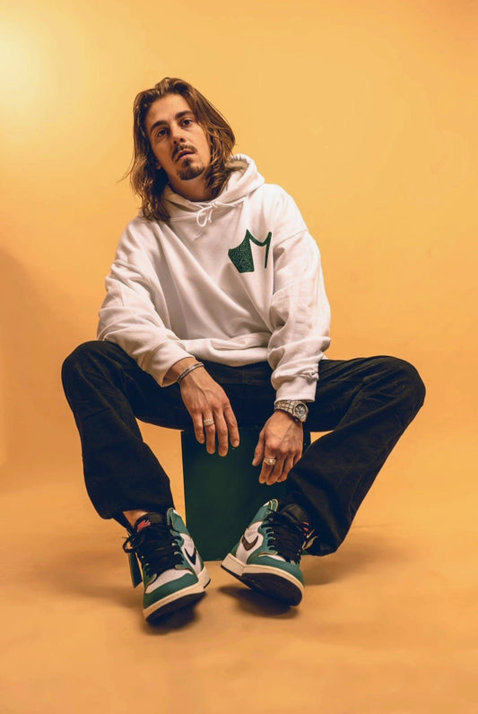 Luxury Hoodie WHITE (GREEN SPARKLE)